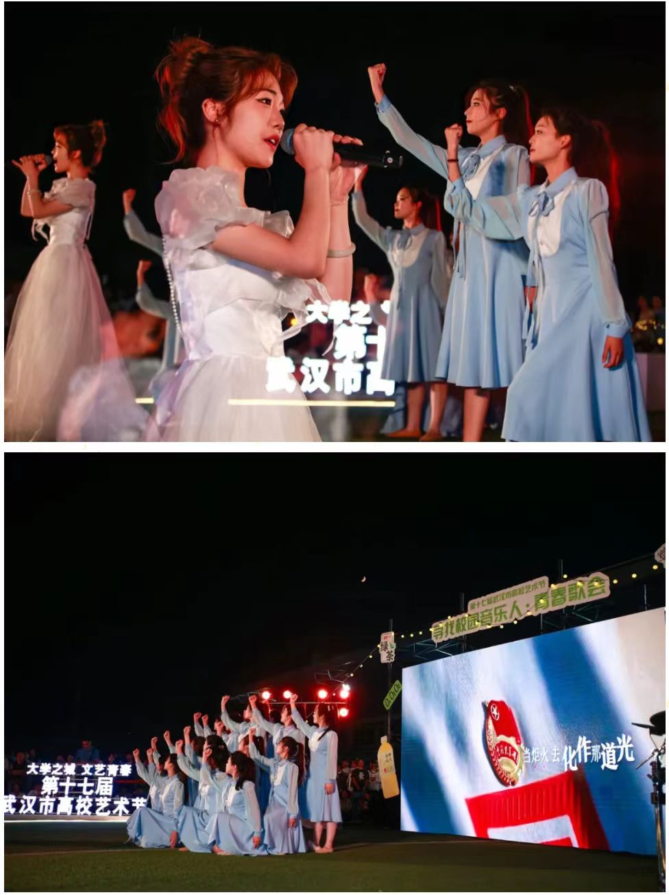 荧光棒的海洋在校园汇聚,人声鼎沸的音乐节在草坪上举办。10月9日晚,第十七届武汉市高校艺术节“寻找校园音乐人”暨武汉城市职业学院“乐”见新“声”青春歌会在学校“一站式”学生社区举办,这场歌会为校园音乐人提供了一个展示自我的舞台,也为同学们带来了一场难忘的视听盛宴。