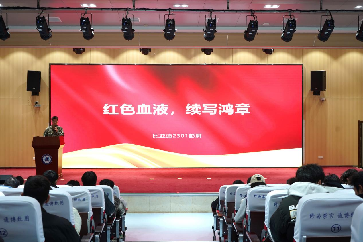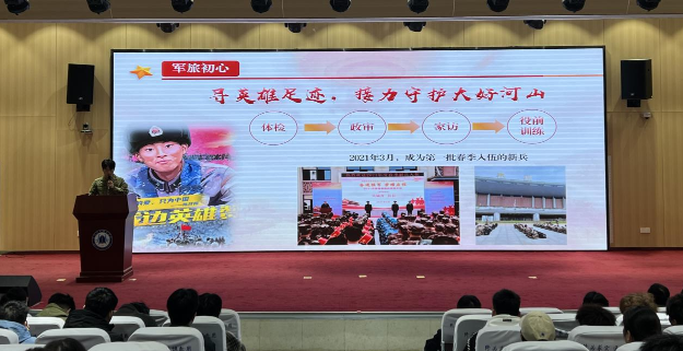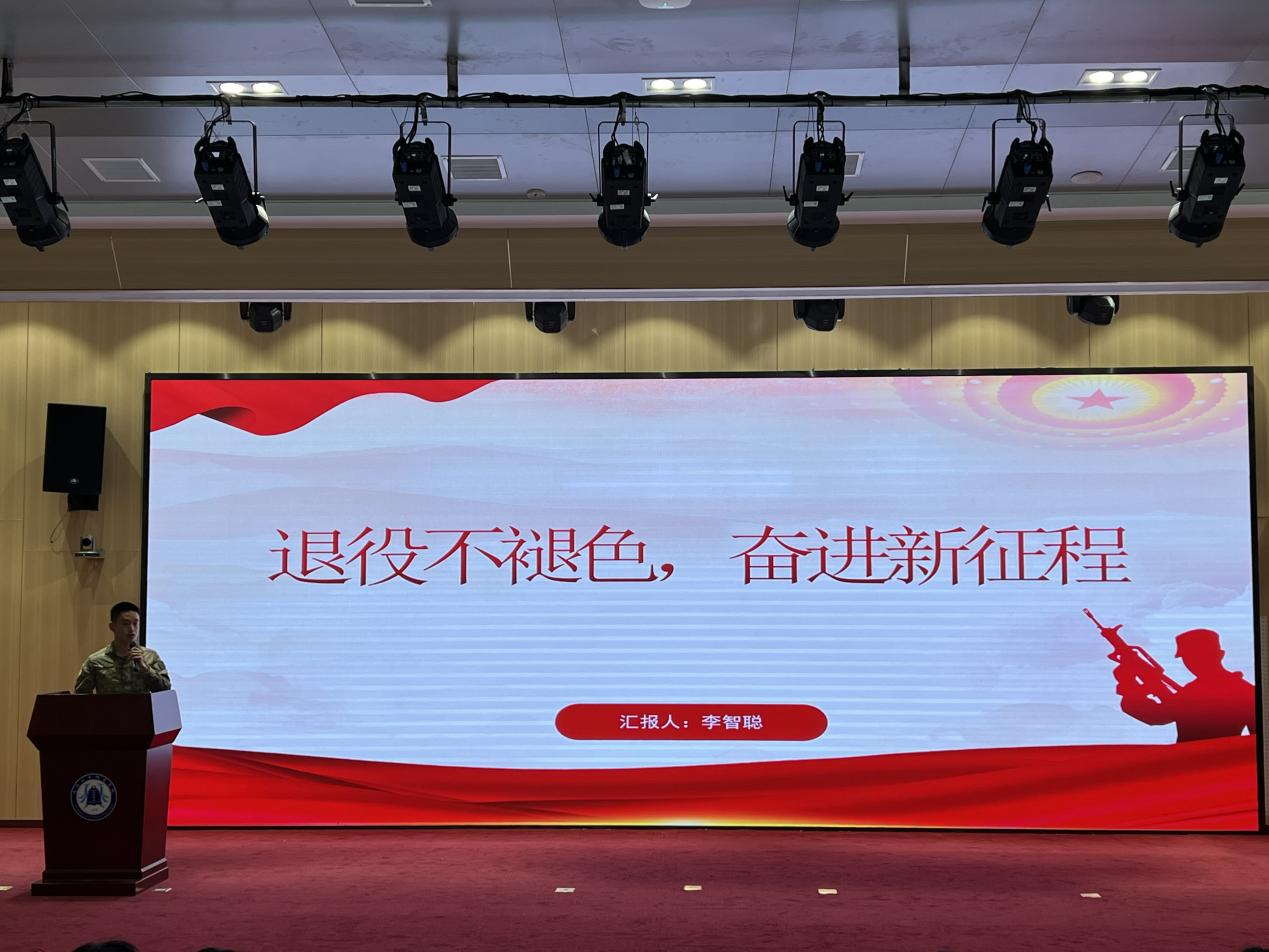 在活动中,学校七位优秀退役士兵:刘铭龙、李智聪、张睿、张涛、郑伊健、彭湃和武天宇,分别上台分享了他们的军旅经历与感悟。七位老兵从各自入伍前的思想动态、服役期间的艰苦训练,到复学后的心得体会,详细讲述了他们如何从青涩大学生成长为一名合格的革命军人,最终回到校园继续追求自己理想的青春故事。
