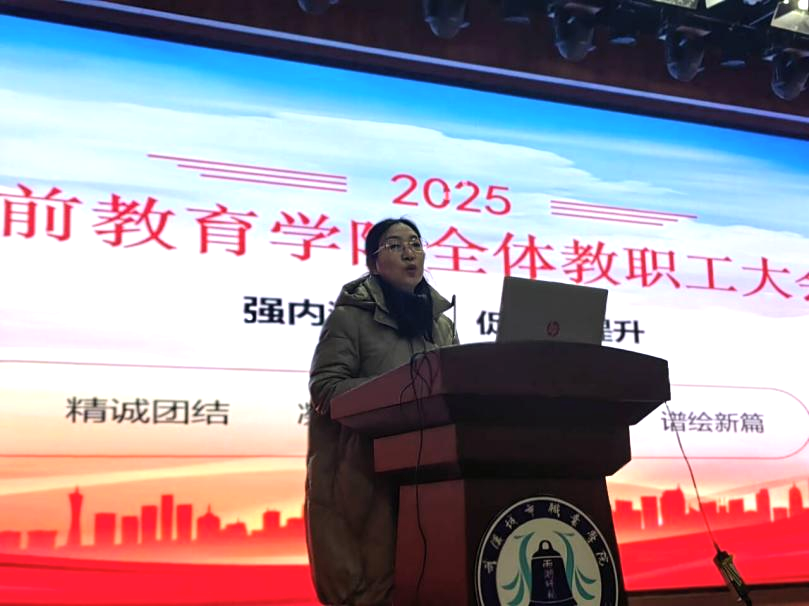 新的一年、新的学期,学前教育学院将紧跟学校提质培优、提能增效、提升队伍、提档升级的步伐,扬优势、补短板,不断从变革中挖掘新机遇,实现新突破。全体教职工将以此次大会为契机,坚守育人初心,满怀热忱希望,扛起学校高质量发展的使命和责任,奋楫扬帆,凝心聚力,共同推动学校高质量发展,努力办好人民满意的教育!