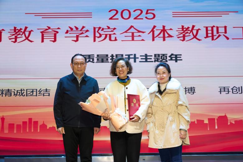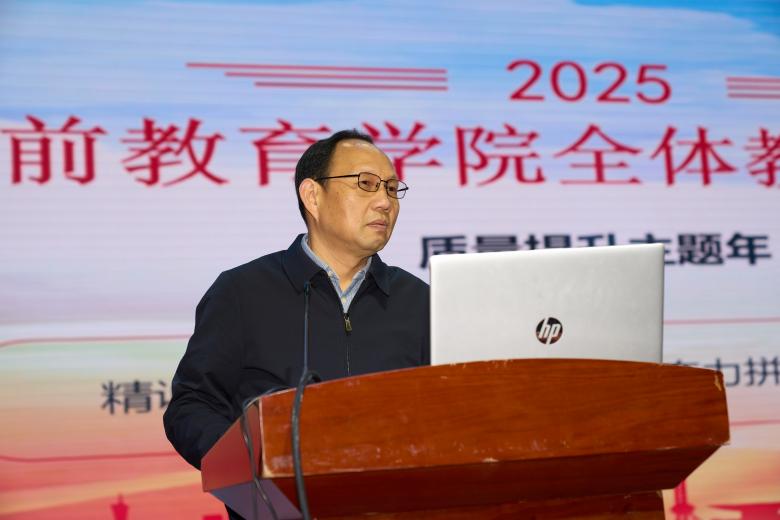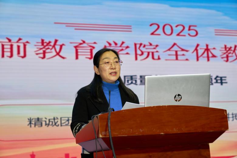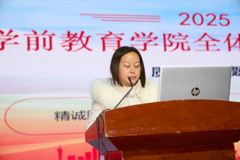 回首耕耘路,聚力创未来。为全面总结本学期工作成果,明确发展方向、凝聚教职工共识,为新学期的高质量发展锚定目标,学前教育学院2024-2025学年第一学期期末全体教职工大会在学院小礼堂召开,学校副校长叶学文莅临指导,学前教育学院全体教职工参加会议。会议由杨素萍院长主持。