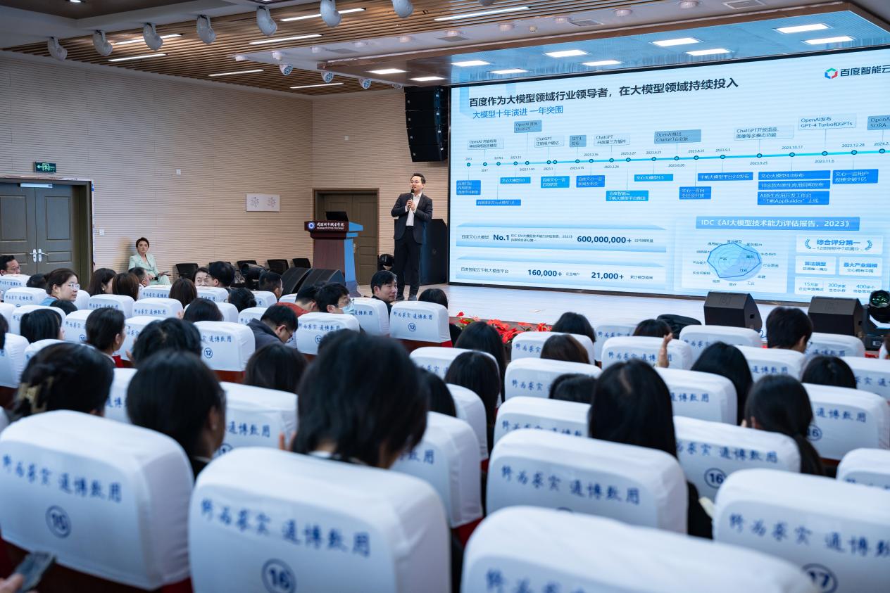 百度智能云创新事业部李想以理论与案例结合的形式,为师生展现了AI技术的应用边界与潜力。