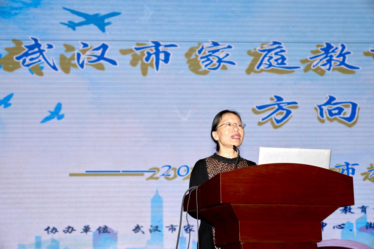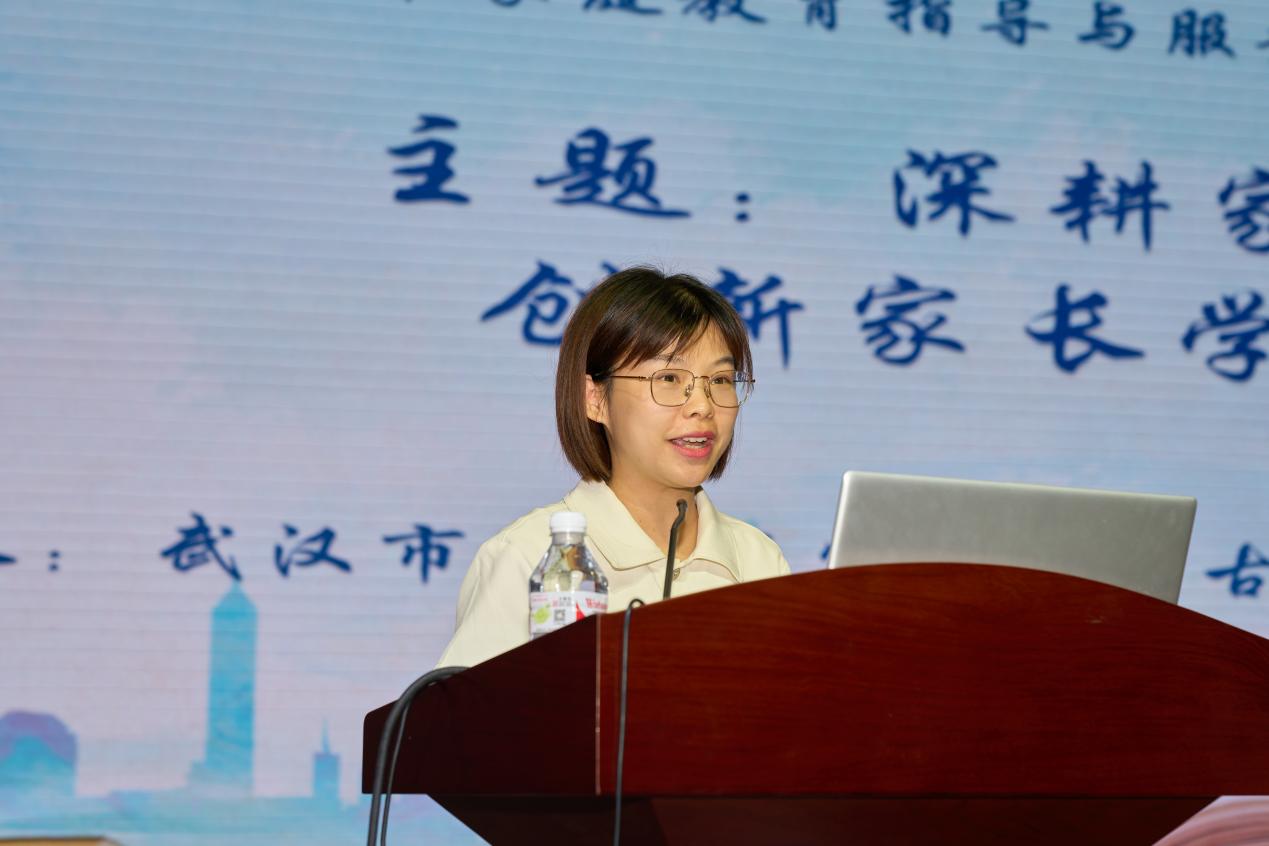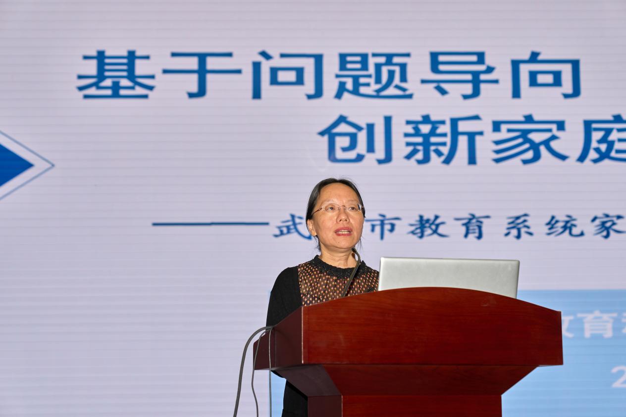 武汉市教育科学研究院基础教育研究所家庭与社区教育研究室主任陈红梅分享《基于问题导向创新家庭教育指导服务体系——武汉市教育系统家庭教育指导服务现状调研总报告》