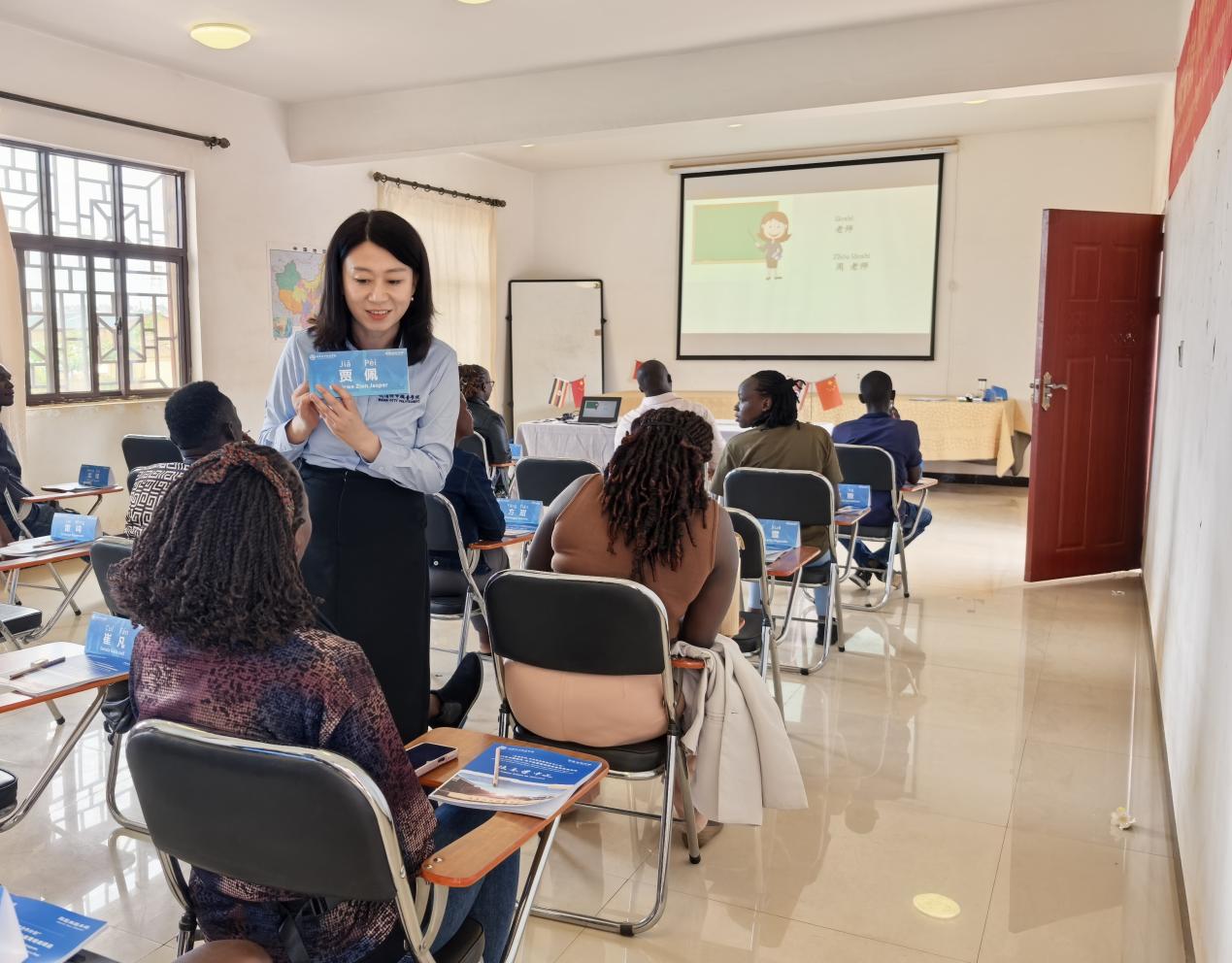 “你好,李雅!我是周老师。”当日下午的第一堂中文课《破冰实名》由周川老师讲授。周川热情地用中文跟学员打招呼,学员们也纷纷模仿着和周老师打招呼并介绍自己,热烈的课堂气氛一下子拉近了师生距离。