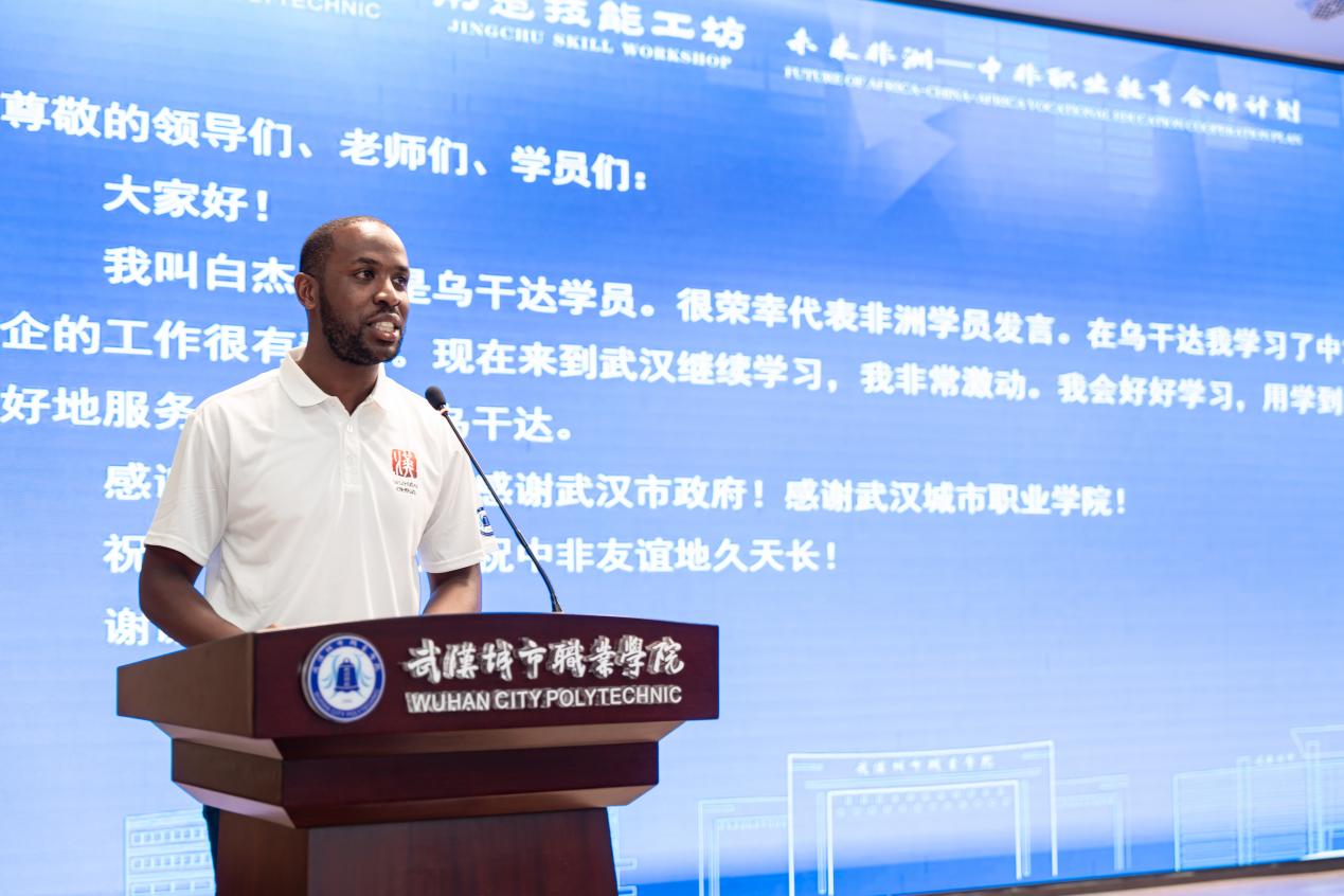 “过去两周,我在乌干达学习了中文,这对我在中企的工作很有帮助。现在来到武汉继续学习,我非常激动。我会好好学习,用学到的语言和技能更好地服务公司,建设乌干达。”开班仪式上,中交一公局乌干达分公司学员代表白杰用中文说道。