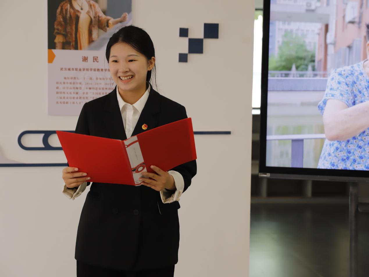 最后,学前2303班袁宇霁代表学生向饶老师表示感谢:“这份紧握在手中的资助,它不仅是一份物质上的支持,更是一份穿越了岁月的、厚重的善意。对于我们这些为梦想奔跑的学子而言,这份帮助让我们少了一份生活的顾虑,多了一份前闯的勇气。它如一束光驱散了我们求学路上的迷茫,在我们心中种下了温暖的种子,让我们深刻的去懂得被人帮助是何其幸运,而我们未来也一定要成为像饶奶奶一样传递光的人。”