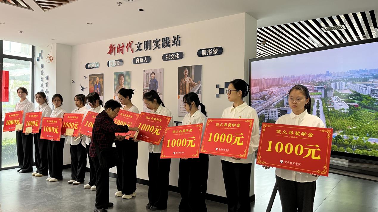 10月16日上午,“饶义兵奖学金”捐赠仪式在武汉城市职业学院北校区“一站式学生社区”举行。参加本次活动的有学校职能部门负责人、学前教育学院院长书记以及教师和学生代表。活动由学前教育学院副书记李玮珏主持。