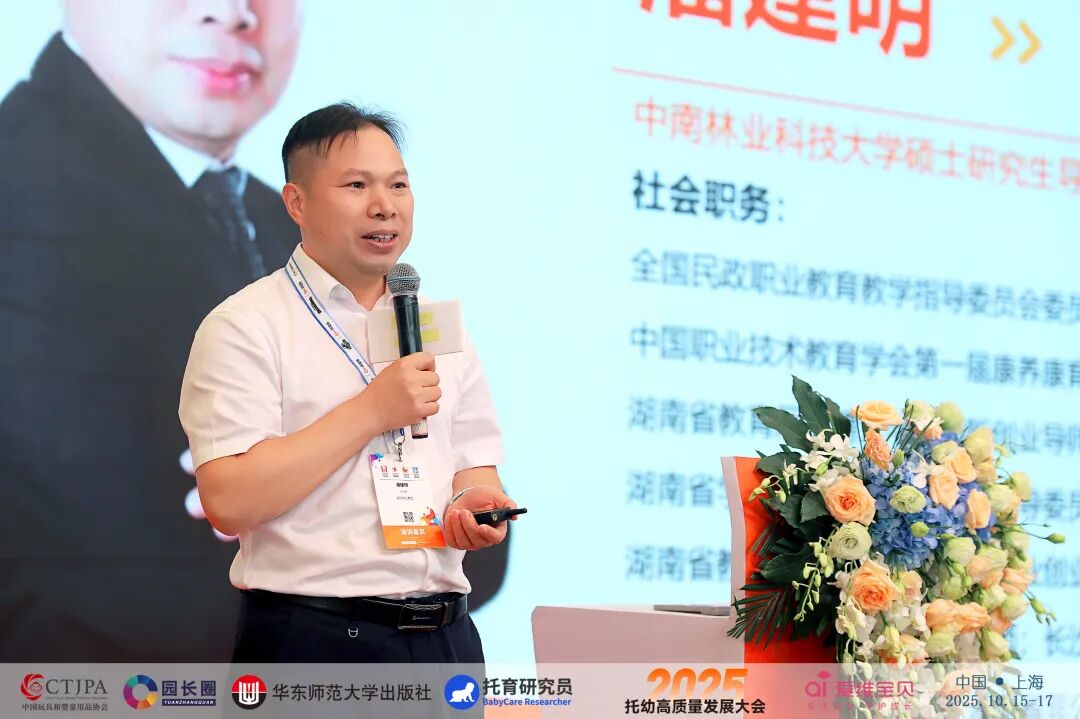 金职伟业教育集团总经理潘建明博士,带来主题报告《3000平,3000万——长沙市区级托育综合服务中心以人才培养支撑城市托育中枢》,详细介绍了央视报道的“网红”长沙雨花区托育综合服务中心——它不仅是一个城市公共服务平台,更是一座“以人才促品质”的托育人才“孵化基地”。金职伟业教育集团作为产教融合的龙头企业,全国婴幼儿照护服务产教融合共同体的牵头单位,自身基因与托育综合服务中心的职能有机完美融合。