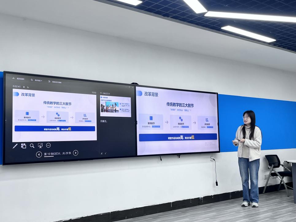 本次“说课程”活动结合学院专业布局与教师授课时间,将参与教师分为三组,分别于12月1日10:00一组、14:00两组在财经大楼304、财经502教室开展。活动严格遵循学校“说课程”规范要求,每位教师围绕一门本学期授课课程,紧扣课程标准、教材与课程资源、课程目标、课程内容、课程教学、课程评价、建设成效与不足七大核心维度展开说课。在8分钟的展示时间里,教师们结合PPT演示,系统阐述课程对接职业标准、契合专业数字化转型升级的建设思路,详细讲解教材选用、混合式教学资源建设情况,清晰界定课程知识技能、职业素养培养目标,并重点分享课程内容融入产业新趋势、课程思政元素,以及运用翻转课堂、项目教学等多元教学方法的实践探索,同时反思课程建设现存问题与改进方向。活动过程中,教师们还按要求携带教案、课程标准、教学进度计划等全套纸质教学资料,以备评委核查。