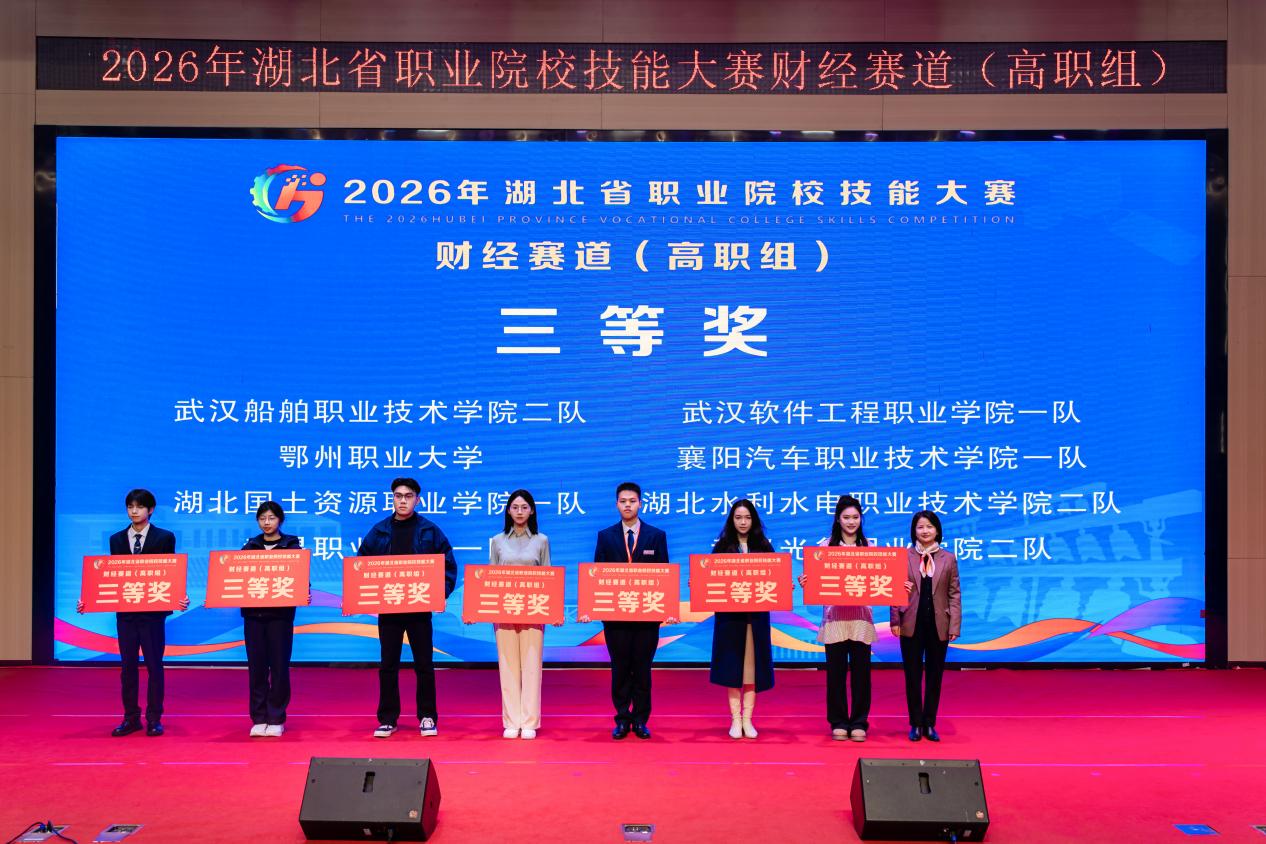 1月16日上午,2026年湖北省职业院校技能大赛财经赛道(高职组)在武汉城市职业学院(南校区)报告厅圆满落幕。来自全省49所参赛院校的师生代表,裁判、仲裁、赛项组委会成员以及学校领导老师等300余人参加闭幕式。