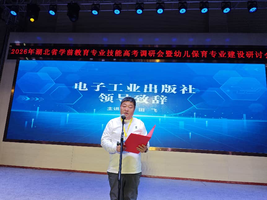 武汉城市职业学院副校长叶学文致辞时表示,学前教育是国民教育重要基石,职业教育是幼教人才培养主阵地,学校将发挥专业优势、深化教学改革,为湖北输送更多高素质技能型幼教人才。电子工业出版社总经理田飞致辞时强调了教材建设对人才培养的核心作用,表示将全力支持职业教育国家规划教材申报出版,为专业建设提供优质资源保障。