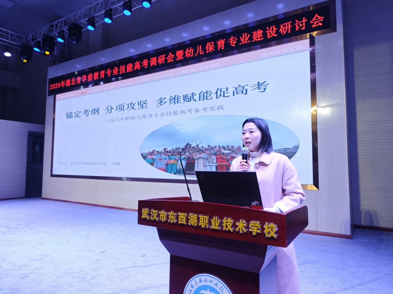 汉川市中等职业技术学校教育与艺术学部部长赵静以学前教育专业技能高考备考实践为主题,从考点分析、教学策略、实训安排等方面分享了宝贵经验,为参会院校优化备考工作提供了实用借鉴。