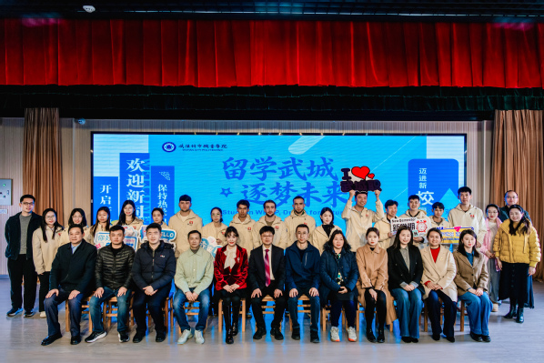 在湖北省教育厅对外合作与交流处、中共武汉市委外事工作委员会办公室、武汉市教育局高等教育处(国际合作与交流处)、武汉市公安局出入境管理局、武汉市公安局洪山区分局、狮子山派出所等各级管理部门支持和指导下,我校于2025年12月正式获批招收来华留学生资质。此次开学典礼标志着我校国际化办学迈入历史新阶段,省、市、区相关部门负责人,学校党委委员、副校长杨春松等共同见证这一里程碑时刻。活动由学校国际教育学院院长吴丽主持。