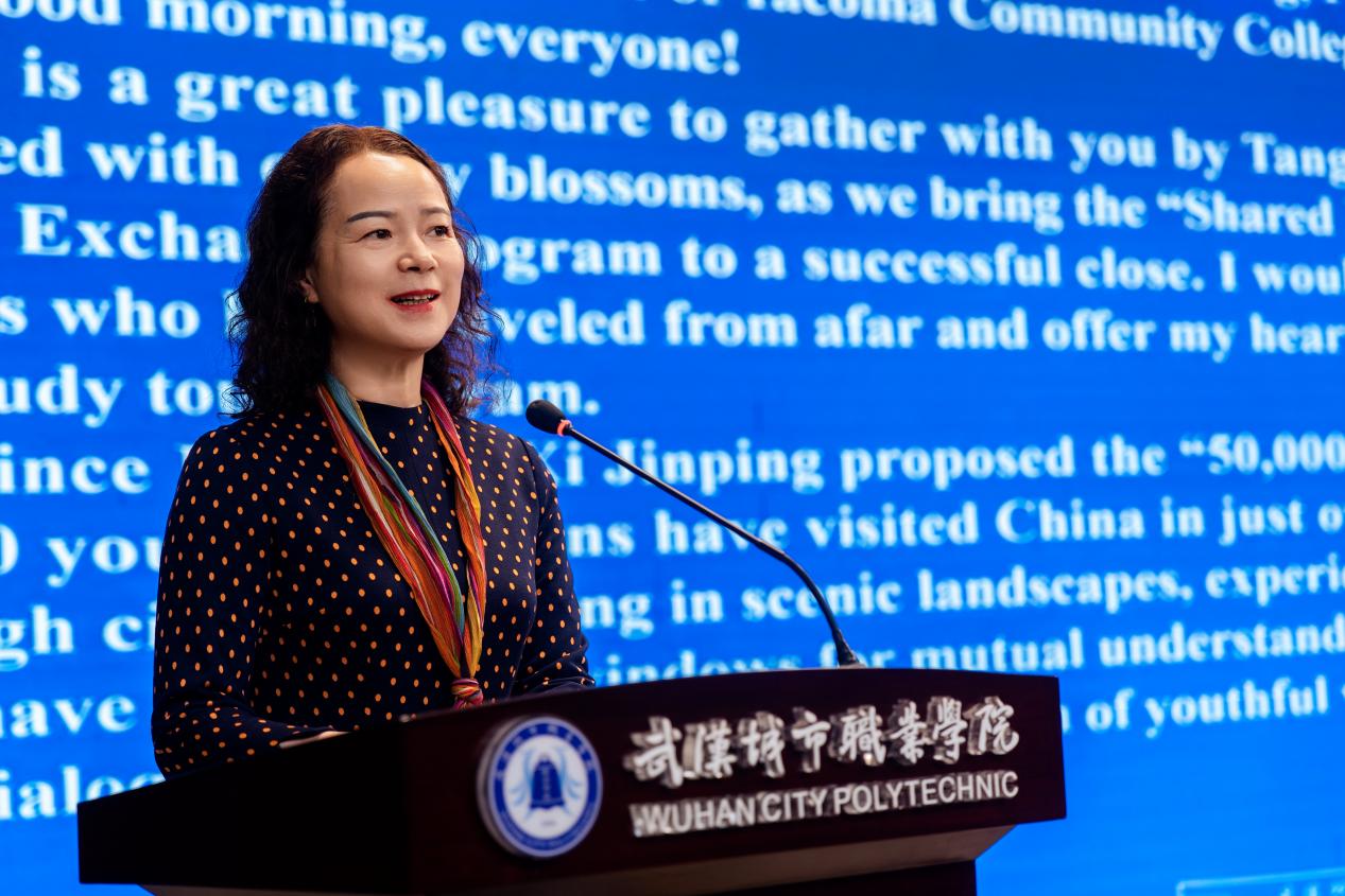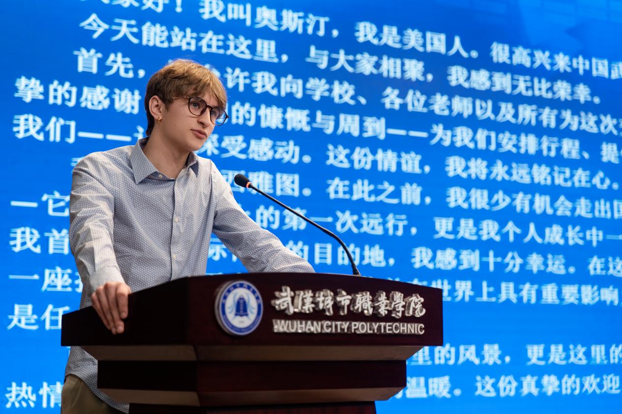 武汉城市职业学院党委副书记、校长刘永生代表学校致辞。他回顾了美国青年学子在汉学习生活的精彩点滴,特别提到:“中美双方师生,用两周不长的时间,做了一件终生难忘的事情。”希望此次研学成为双方友谊延续、合作深化的新起点,共同为中美教育交流和友城青年交流贡献力量。
